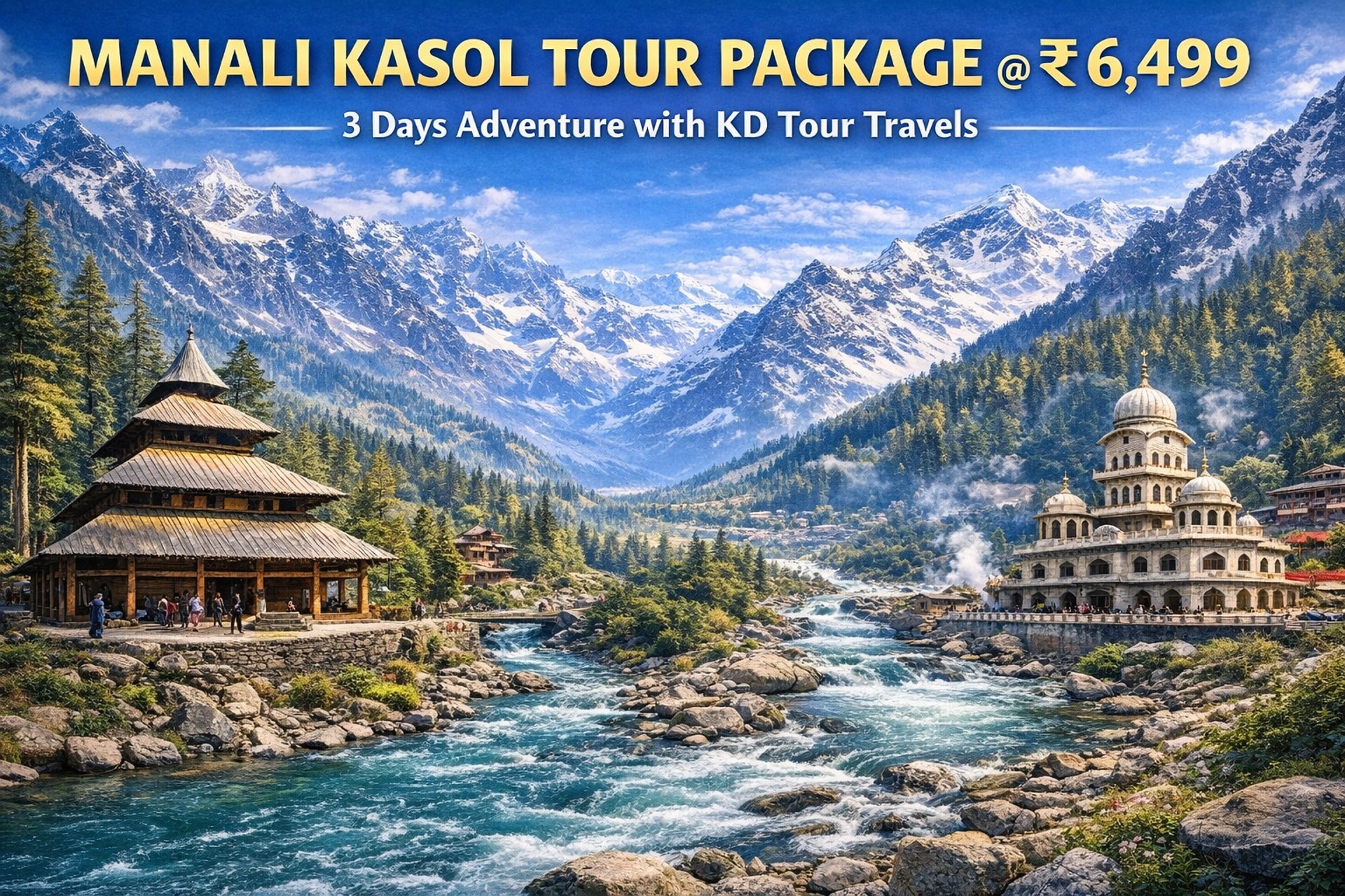 Looking for a budget-friendly Manali Kasol tour package that covers snow, mountains, adventure, and spirituality? KD Tour Travels brings you the perfect 3 Days Manali–Kasol Explore Tour at just ₹6,499 per person.