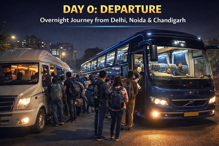 Overnight journey from Delhi, Noida, or Chandigarh in AC premium transport.